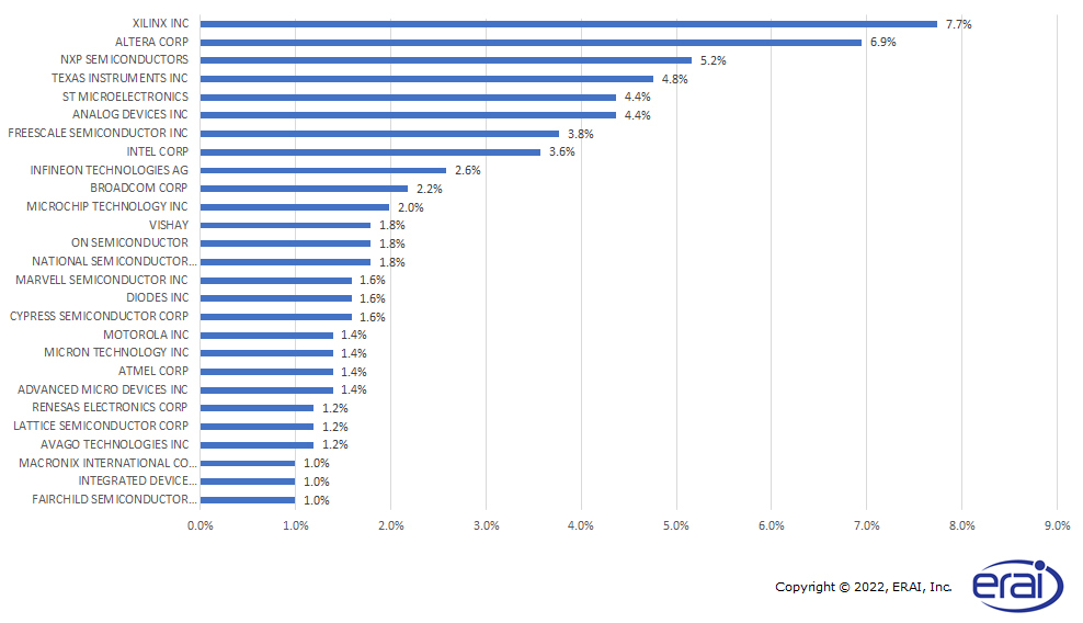 When we examine the trend chart of most commonly reported component types over the last 8 years, we can better view the ending of the capacitor spike. Moreover, we can observe that while all other component types have undergone a marked increase in the last year, analog devices have shown the largest year-to-year increase since ERAI has tracked this data. It will be interesting to see if this trend continues in 2023 or if it is limited to just a one-year occurrence.